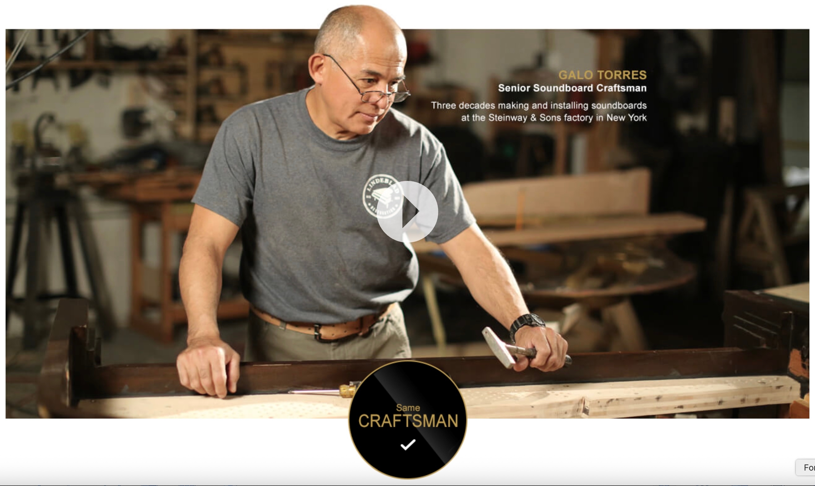 "So I walked into the factory and he introduced me to Galo. He's got a big smile on his face. He's got his workshop—it smells like wood. And he couldn't wait to tell me how he builds these soundboards, because he knew what he was doing. Then I found out this guy was the belly man for Steinway restoration process for thirty years. And now he's working for Lindeblad, making these soundboards to the exact standards that Steinway would want in their pianos. I mean, that sold me right there. He's the guy." - Eric Adcock, Grammy-Nominated Musician