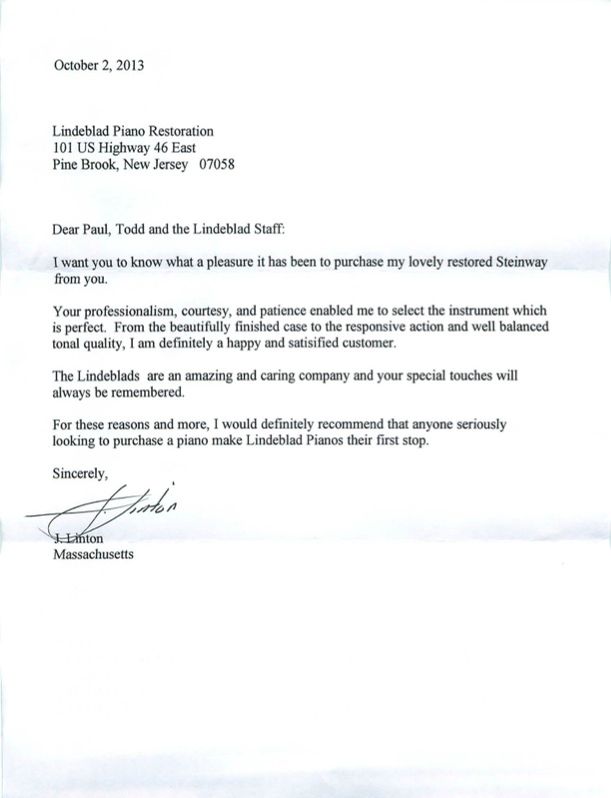 I want you to know what a pleasure it has been to purchase my lovely restored Steinway from you.
