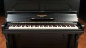 This is a fully rebuilt Steinway upright with a Victorian styled satin ebony case. It has new key tops and comes with a matching chair.