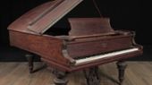 This incredibly rare Victorian styled Model B is encased in a beautiful flame mahogany veneer. It has exquisite carvings and "ice cream cone" legs. It will be fully restored with authentic Steinway parts and refinished in a stain of your choice. Piano also comes with a matching artist bench.
