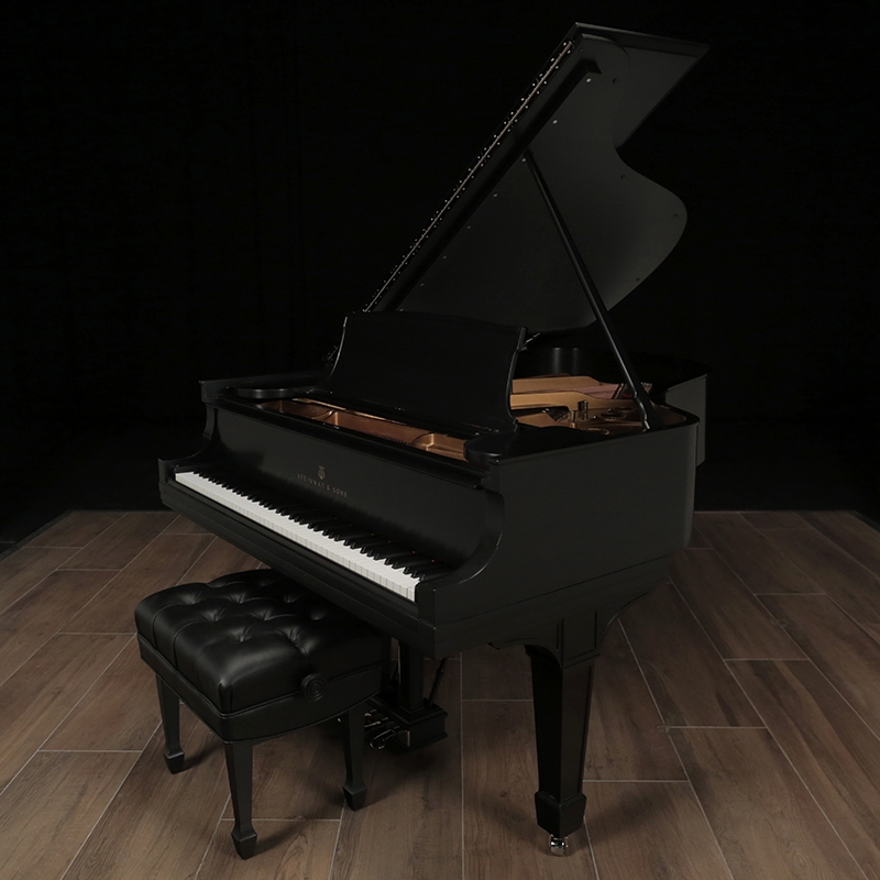 This Steinway Grand, Model A has a classic traditional styled case. It has just been fully restored with authentic Steinway parts and refinished in a hand-rubbed satin ebony finish. Includes a matching artist bench.