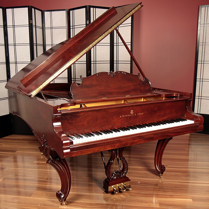 This Model A Steinway in the Louis XV style is an exceptionally rare piano. It is incased in a beautiful mahogany cabinet and comes with a matching artist bench. It has been completely restored and refinished in a rich cherry mahogany finish.