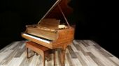 This Model M has an excellent original soundboard and was previously restrung. We will be installing a new Steinway Action and refinishing it in a wood tone stain. Contact us on how we can adjust the tone to your liking and picking a stain of your choice. Includes matching bench shown.