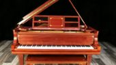 This Artcase Model O has an African Mahogany veneer with beautiful inlays. This was rebuilt in 2019 and has a New York Steinway Action. Contact us on how we can adjust the tone to your liking. Include the original bench shown.