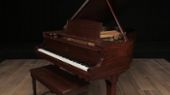 This Steinway was professionally restored back in 2000 with NY Steinway hammers and Renner shanks, flanges and wippens. It was also refinished in a lovely satin mahogany stain. The original soundboard is in excellent condition with no cracks. It will be restored with new strings, a pin block, a rebronzed harp, and new key tops. Comes with a matching wood top bench shown.