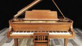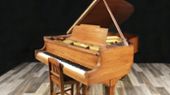 This Model M has a traditional style case in a Mahogany veneer. Contact us to learn how we can custom rebuild this piano to your preferences! Includes original chair shown or a matching wood top bench can be supplied.