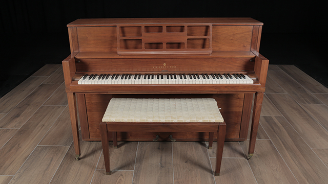 This is a unique Steinway console in very good mechanical condition. The walnut case can be refinished in a stain of your choice or refinished in a satin ebony. Comes with a matching bench shown.
