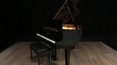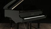 This is a Strauss baby grand piano with a high-gloss ebony finish. Comes with a matching bench.